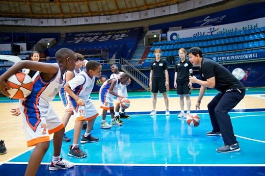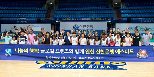 인천 신한은행 에스버드 여자농구단이 17일 사회공헌 활동 '재능기부'의 일환으로 전국 다문화&유소년 농구대회에서 2년 연속 우승을 차지한 유소년 농구단, '글로벌 프랜즈'를 홈구장으로 초청하여 뜻깊은 시간을 보냈다.
