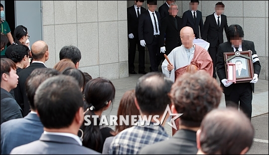 발인식에 앞서 오전 9시 10분께 진행된 영결식은 불교 예배 형식으로 엄숙한 분위기 속에 치러졌다.