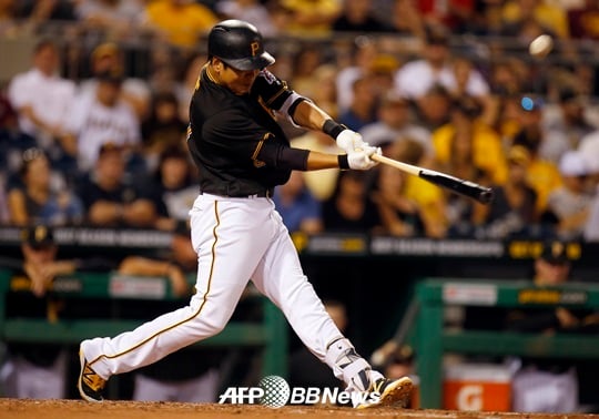 두 경기 연속 멀티히트를 친 강정호. /AFPBBNews=뉴스1