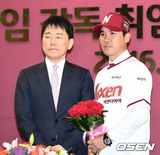 끝으로 이 대표는 "장 감독은 우리 선수들과 9시즌을 함께하면서 때로는 고된 일도 해왔다. 9시즌 동안 현장을 누볐다. 따라서 현장 경험이 없다는 건 말이 안 된다고 생각한다. 저는 야구 선수가 필요한 경우에 한해서 지도를 해야 한다고 생각한다. 더불어 현역 선수만큼 프로야구를 잘 아는 지도자가 없다고 생각한다. 우리 선수와 코칭스태프를 잘 이해하고 믿고 리드할 수 있는 인물이라 장 감독을 선택했다"고 강조했다.