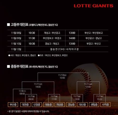롯데기 중고교야구대회 대진표. /사진=롯데 자이언츠 제공