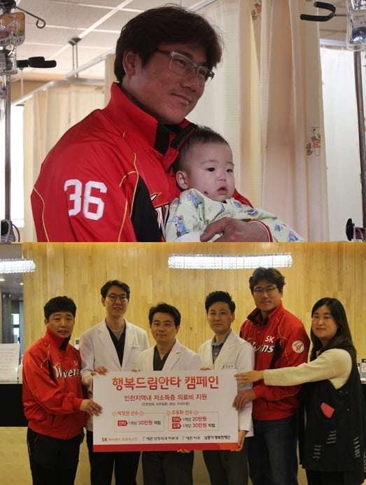 박정권은 2013년부터 이어온 ‘SK 행복 더하기 겨울 나눔 릴레이’를 통해 올해까지 4년 연속 인천 소재 다수의 병원을 방문했다. 환우 위로와 사인회에 적극 참석해 추운 겨울, 따뜻한 사랑 나눔을 몸소 실천했다.