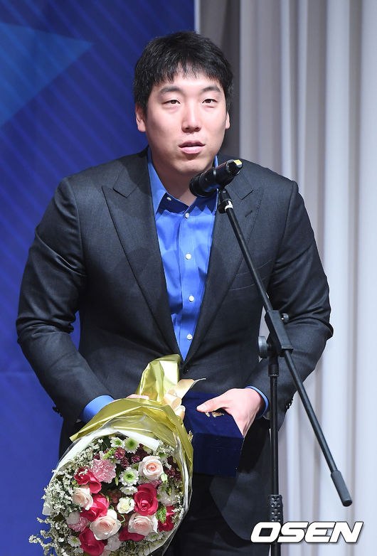 상을 받은 김현수는 "내년에 더 잘하라는 뜻으로 알고 더 열심히 하겠다"는 소감을 짧게 말했다.