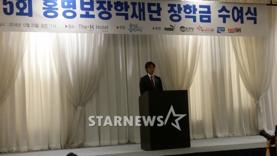 이날 홍명보 재단 이사장은 "그동안 재단에서 축구계 안팎으로 여러 선수들을 배출해왔다. 앞으로도 묵묵히 축구계에 지원을 계속 하겠다"는 인사말을 전했다.