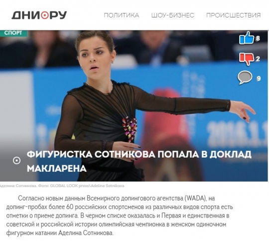 아델리나 소트니코바 도핑 의혹 기사 /사진=러시아 매체 DNI.RU 사이트 캡처