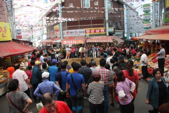울산 대송시장에서 열린 상인과 손님들의 씨름 모습 /사진=문화재청 제공