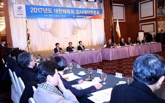 대한체육회가 25일 오후 2시 30분 올림픽파크텔 1층 올림피아홀에서 2017년도 제1차 임시대의원총회를 개최하여 정관 전부를 개정했다.