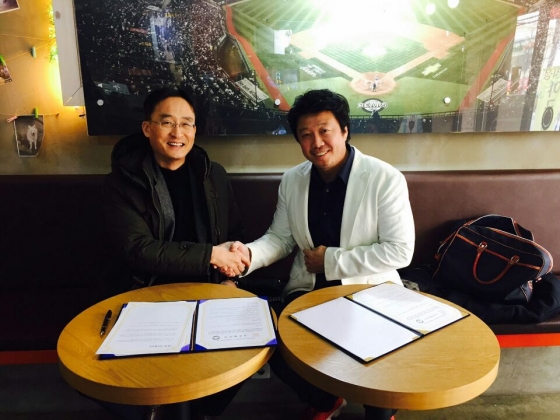 왼쪽부터 나진균 서울시야구소프트볼협회 사무처장, 최익성 저니맨 외인구단 대표 /사진=저니맨 스포츠 제공