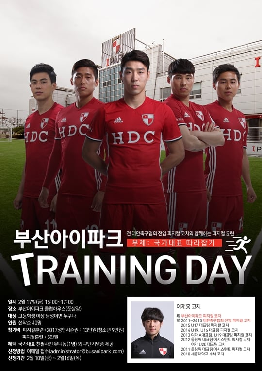 수강료는 2017시즌 시즌권(10만원 상당)이 포함된 테스트 상품은 13만원(청소년 9만원)이며 피지컬 테스트 단일로는 5만원이다. 앞으로 시즌권 구매 계획이 있는 부산 축구팬에게는 피지컬 훈련도 받아볼 수 있는 색다른 경험이 될 전망이다.
