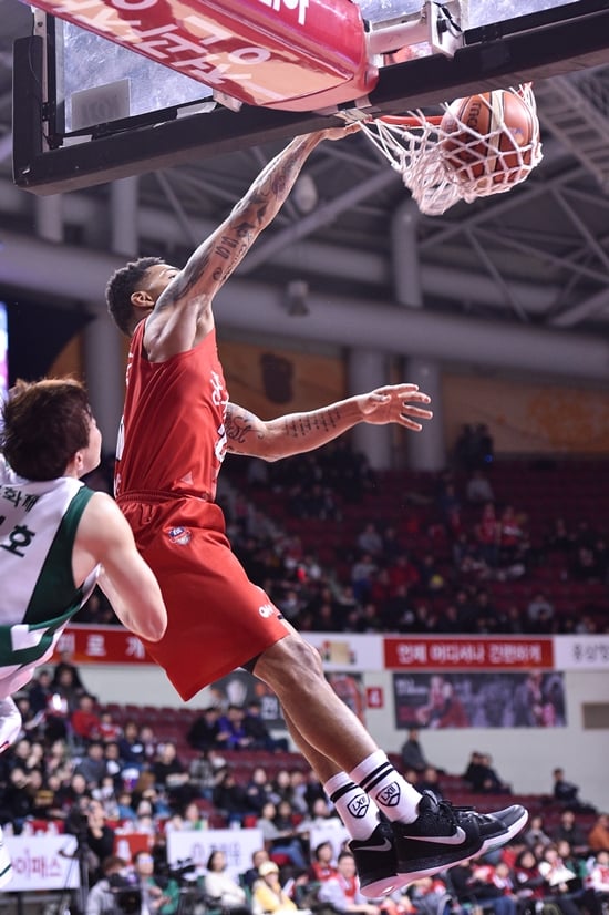 KGC는 14일 안양실내체육관에서 열린 '2016-2017 KCC 프로농구' 동부와의 경기에서 87-74로 승리했다. 이날 승리로 KGC는 27승13패를 기록, 선두 삼성(27승12패)과의 격차를 반 경기로 줄였다.