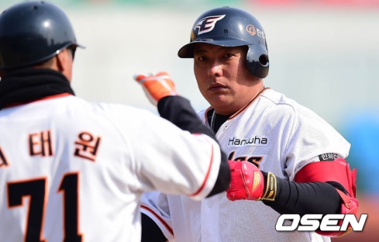 이후 정현석의 볼넷과 상대 폭투, 장민석의 1루수 실책, 김회성의 볼넷 등을 통해 1사 만루 기회를 잡았다. 여기서 강경학의 유격수 땅볼 때 3루 주자가 홈을 밟으며 8-1이 됐다. 계속된 2사 1,3루에서 로사리오의 좌중간 싹쓸이 2루타가 터졌고, 김태균의 적시타가 더해지며 11-1까지 격차가 벌어졌다.