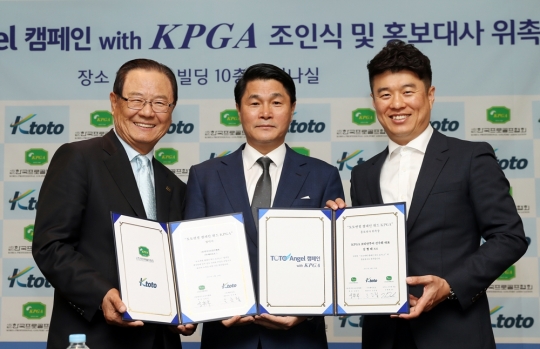 한국프로골프협회(이하 KPGA)와 케이토토가 24일 경기도 성남시에 위치한 KPGA 빌딩 10층에서 'TOTO Angel 캠페인 with KPGA' 조인식 및 홍보대사 위촉식을 열었다.
