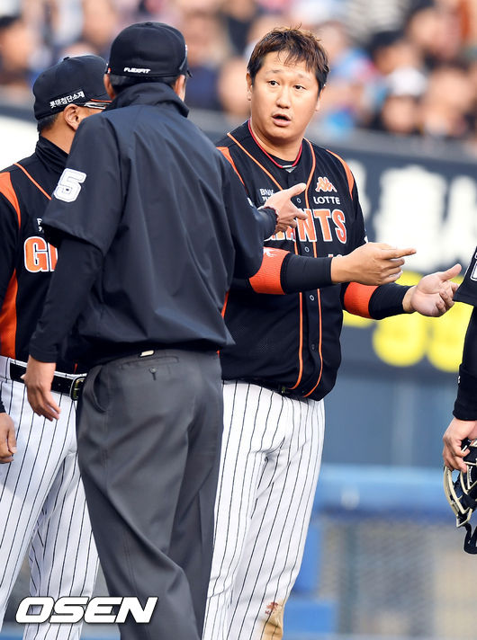 이대호(35,롯데)가 KBO리그 개인 통산 첫 번째로 퇴장을 당했다. 그의 퇴장 판정에 심판진이 적용한 잣대는 무엇이었을까.