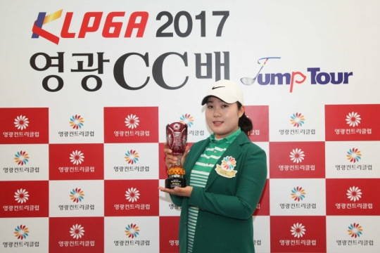 송나영은 11일 전남 영광에 위치한 영광컨트리클럽(파72/6,141야드) 오션(OUT), 밸리(IN) 코스에서 열린 'KLPGA 2017 영광CC배 점프투어 4차전(총상금 3천만 원, 우승상금 6백만 원)'에서 우승 트로피를 들어올렸다.