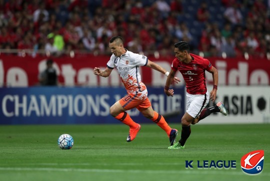 상승세를 탄 우라와는 계속해서 공을 따내며 제주를 몰아붙였다. 전반 31분에는 이충성이 아크 근처서 왼발로 감아 찬 슈팅이 왼쪽 골대를 강타했다.
