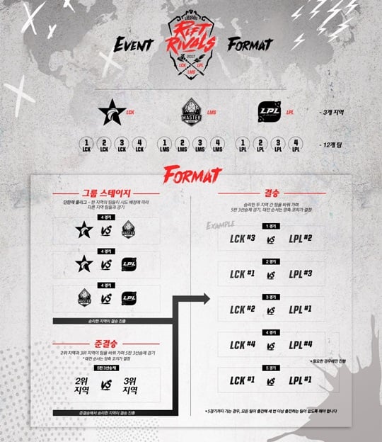 리프트 라이벌스는 현재 전세계 13개 지역에서 열리고 있는 LoL e스포츠 리그를 5개 권역으로 구분해 진행한다. 한국(LCK)은 중국(LPL), 대만/홍콩/마카오(LMS)와 함께 7월 6일부터 9일까지 4일간 대만 가오슝에 위치한 '가오슝 전람관(Kaohsiung Exhibition Center)'에서 개최되는 대회에 참가한다.