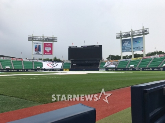 잠실구장 날씨가 애매하다. LG의 전설 이병규의 영구결번 행사가 열리는 날이라 더 민감하다.