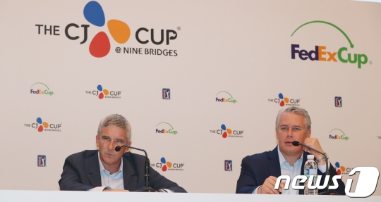 PGA투어 커미셔너 제이 모나한과 국제 사업 담당 부사장 타이 보타우가 한국에서 처음으로 열리고 있는 더 CJ컵 @ 나인브릿지(이하 CJ컵)에 대해 긍정적으로 평가하면서 장기적으로 더욱 발전시키겠다는 계획을 밝혔다.