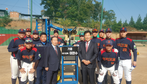 이만수(59) 전 SK 와이번스 감독이 서울 성지고 야구부(감독 한길세)에 피칭 머신을 후원했다.