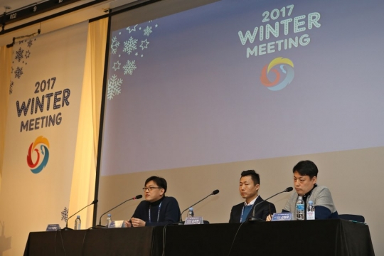 KBO는 11일 서울 양재동에 위치한 서울 더 케이호텔에서 '2017 KBO 윈터미팅'을 개최했다. 이 자리에는 구단 프런트를 비롯해 미디어, 팬 40명 등이 입추의 여지 없이 참석해 KBO 리그에 대한 많은 관심을 드러냈다.