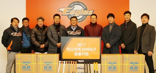 한화이글스가 연고 지역인 충청 및 강원 영서지역의 아마야구 발전을 위해 초중고 야구부 32곳에 용품을 지원했다.