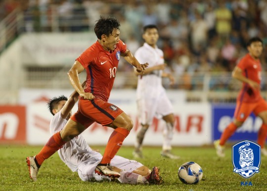 후반 시작하자마자 한국은 앞서나갈 기회를 놓쳤다. 후반 2분 이근호가 공격 상황에서 얻어낸 페널티킥을 윤승원이 실축하며 리드를 가져오는데 실패했다.