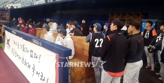 특히 양승호 전 감독은 인사말을 전했다. 양 전 감독은 "더 이상 밑으로 내려가지 못한다. 위로 올라갈 일만 남았다. 이틀 동안 최선을 다해달라. 좋은 결과 있기를 희망한다. 화이팅이다"라고 말하며 선수들에게 응원의 메시지를 남겼다.