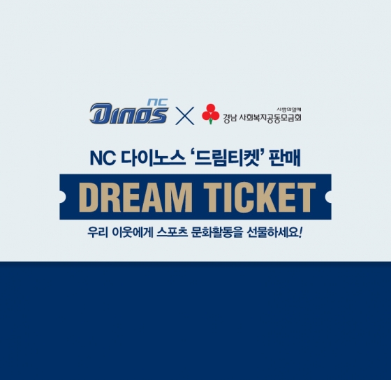 NC 다이노스가 경남 사회복지공동모금회와 함께 오는 19일부터 3월 7일까지 기부 입장권 제도인 ‘드림(Dream) 티켓’을 판매한다.