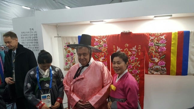 안토니우 구테흐스 유엔 사무총장은 지난 8일 휴전벽 행사 참여를 시작으로 선수촌에서 한복을 직접 입어보는 체험을 했으며 에스토니아 케르스티 칼유라이드 대통령은 9일 평창에서 자국 선수들과 함께 크로스컨트리를 즐기고 한복 체험을 했다.
