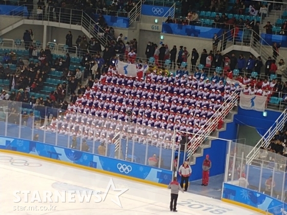 한국 남자 아이스하키 대표팀이 올림픽 첫 경기를 치른다. 상대는 체코. 이 경기를 응원하기 위해 북한 응원단이 현장을 찾았다.