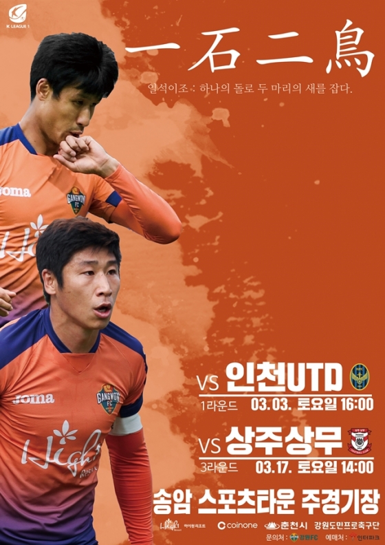 한편, 강원FC는 2018시즌 K리그1(클래식) 정규리그 33라운드 중 16경기를 춘천 송암레포츠타운에서 치르며 상위스플릿에 진출할 경우 추가로 홈 경기를 치를 예정이다.
