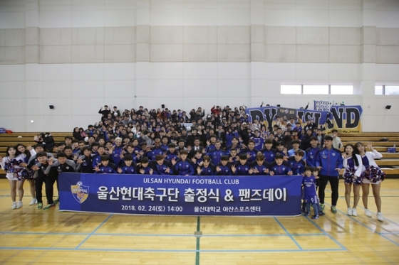 울산현대축구단이 지난 24일 오후 울산대학교 아산스포츠센터 내 체육관에서 열린 '출정식 및 팬즈데이'에서 2018시즌 우승을 다짐했다.