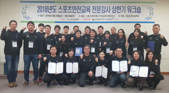 스포츠안전재단이 2월 23~24일 경기도 용인시 써닝리더십센터에서 전문교육강사 및 재단 임직원 등 30여명을 대상으로 ‘2018 스포츠안전교육 전문강사 상반기 워크숍’을 가졌다.