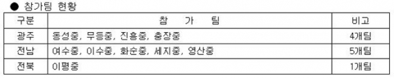 이번 대회에는 광주, 전남, 전북 지역 10개팀이 참가하며, 토너먼트 방식으로 승부를 가릴 예정이다.