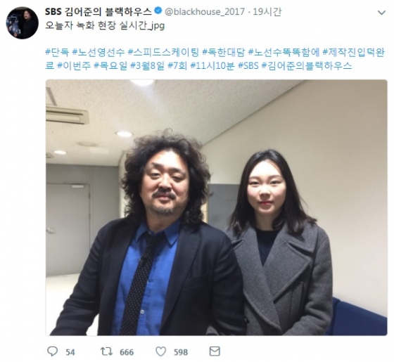 SBS '김어준의 블랙하우스'는 지난 5일 SNS에 사진 한 장을 올렸다. 진행자 김어준과 노선영이 나란히 서 있는 사진이다.