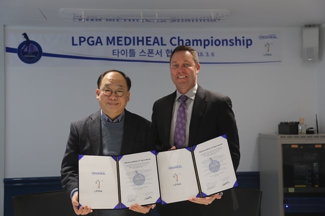 6일 진행된 스폰서 후원 계약식에는 권오섭 엘앤피코스메틱 회장, 추교인 사장 등 메디힐 임원과 LPGA 투어 사무국의 마이크 완 회장, 존 포다니 부회장, 션 변 LPGA 아시아지사장 등 관계자들이 참석한 가운데 진행됐다.