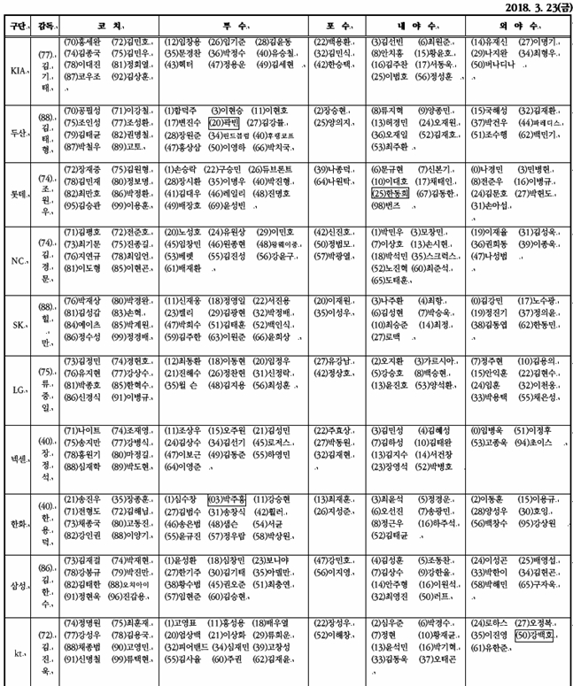 2018 KBO 개막전 엔트리가 확정, 발표됐다.