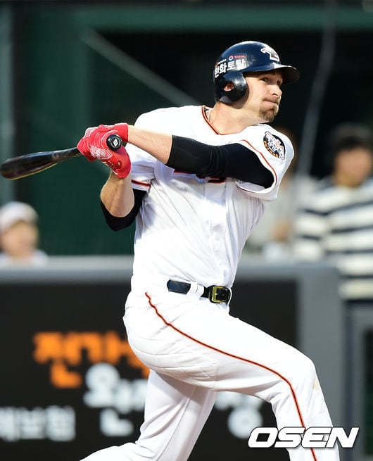 5툴에 대해서는 "홈런 뿐만 아니라 수비, 번트, 베이스 러닝도 할 수 있다. 맞는 말이라 생각한다. 경기 전 팬들의 함성을 들으면 기분이 좋고, 응원가도 재밌다. 훌륭한 응원가라 생각한다"고 웃었다.