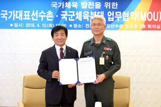 대한체육회가 10일 진천국가대표선수촌에서 국가체육 발전을 위해 국군체육부대와 업무협약을 체결했다.