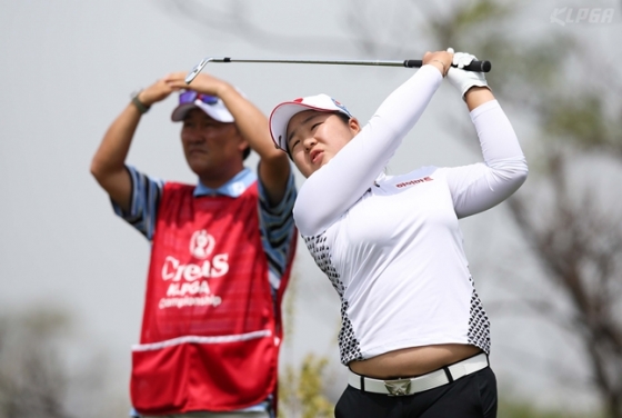 역시 10번홀에서 출발한 김지영2는 11번홀(파5)에서 버디를 낚았으나 14번홀(파4)에서 보기를 범해 이븐파, 타수를 줄이지 못하고 있다. 공동 2위다.