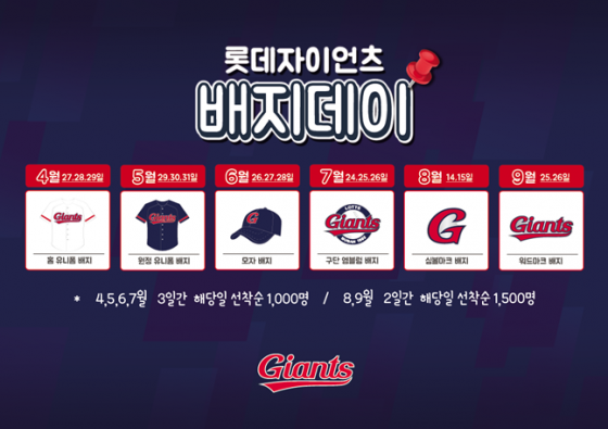 배지데이는 일회성으로 끝나지 않고 매월 특정 시리즈를 선정해 9월까지 총 6회 실시할 예정이다. 배지 디자인 역시 총 6종으로 롯데자이언츠 신규 VI가 적용된 유니폼과 모자, 엠블럼 등 다양한 종류의 배지를 월별로 만나볼 수 있다.