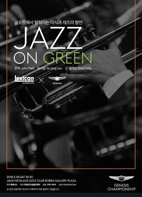 제네시스가 오는 24일부터 27일까지 나흘간 인천 송도 잭 니클라우스 골프클럽에서 열릴 한국프로골프(KPGA) 코리안투어 '2018 제네시스 챔피언십' 대회 기간 중, 갤러리들을 위한 문화 행사의 일환으로 골프장에서 펼쳐지는 재즈 콘서트 '재즈 온 그린'(JAZZ ON GREEN)을 개최한다.