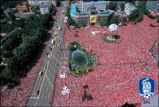 '1998년 프랑스 월드컵'부터 소규모로 시작된 월드컵 거리응원은 '2002 한일 월드컵'을 통해 한국의 독특한 축구문화로 세계적인 관심을 모았다. 이후 월드컵이 열릴 때마다 서울광장을 비롯해 주요 도시마다 단체응원이 펼쳐지고 있다. 거리응원 인파가 가장 많았던 경기는 온 국민의 결승 진출 염원이 담겼던 2002 월드컵 준결승 독일전이었다. 경찰이 추산한 이날 전국의 거리응원 참가자는 총 700만명. 서울에서만 240만이 모였다고 하니 서울시민 4명 중 1명꼴로 참여한 셈이었다. 2위는 '2002 한일 월드컵' 스페인과의 8강전으로, 전국 곳곳에서 500만명이 대표팀을 응원했다.