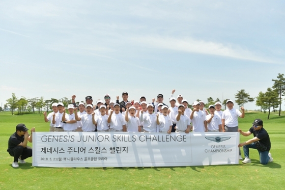 제네시스 브랜드(이하 '제네시스')가 '2018 제네시스 챔피언십' 개최의 일환으로 21일 오전 송도에 위치한 잭 니클라우스 골프 클럽 코리아에서 KPGA 코리안투어 주요 선수들이 유소년 골프 선수들과 함께 팀을 만들어 대결을 펼치고 멘토링을 해주는 '제네시스 주니어 스킬스 챌린지'를 성황리에 진행했다.