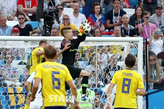 '조현우 선방쇼' 18일 오후(현지시간) 2018 러시아 월드컵 F조 조별리그 대한민국과 스웨덴의 경기에서 조현우가 볼을 막아내고 있다./사진=이기범 기자