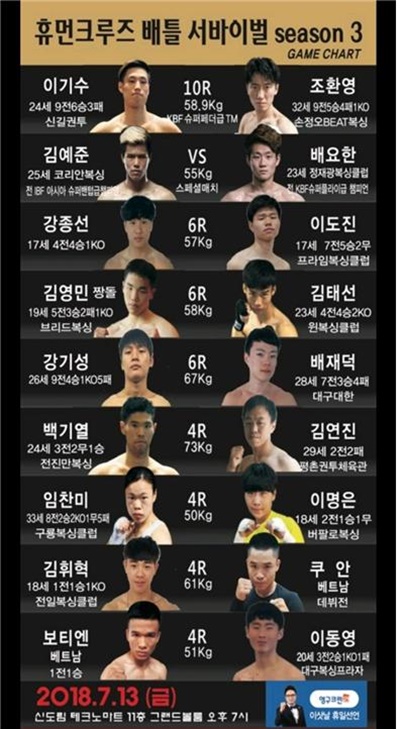프로복싱 ‘휴먼크루즈 배틀서바이벌 3’ .. 13일 신도림 테크노마트