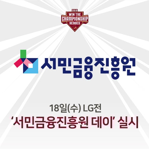넥센 히어로즈가 18일 오후 6시 30분 서울 고척 스카이돔에서 펼쳐지는 LG트윈스와 경기에 ‘서민금융진흥원 데이’ 이벤트를 진행한다.