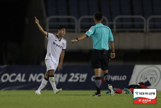 광주는 지난 21일 부천FC1995와 KEB하나은행 K리그2 2018 20라운드 원정에서 1-0으로 승리했다. 나상호는 이날 경기 종료 직전 환상적인 하프 발리 슈팅으로 부천 골망을 흔들며 극적인 승리를 이뤄냈다.