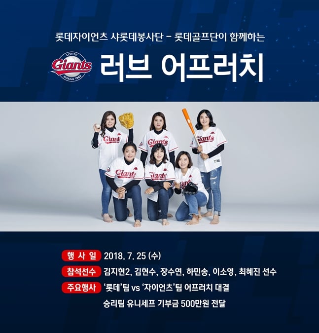 롯데 자이언츠가 오는 25일 NC와의 홈경기에서 롯데 골프단 소속 선수들과 함께하는 '러브 어프러치' 행사를 실시할 예정이다.