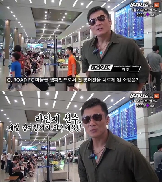 ROAD FC(로드FC) 미들급 챔피언 최영(40·Shinbukan/Land's end)이 28일 열리는 XIAOMI ROAD FC 048에서 라인재(32·팀 코리아 MMA)를 상대로 1차 타이틀 방어전을 치르기 위해 26일 입국했다.